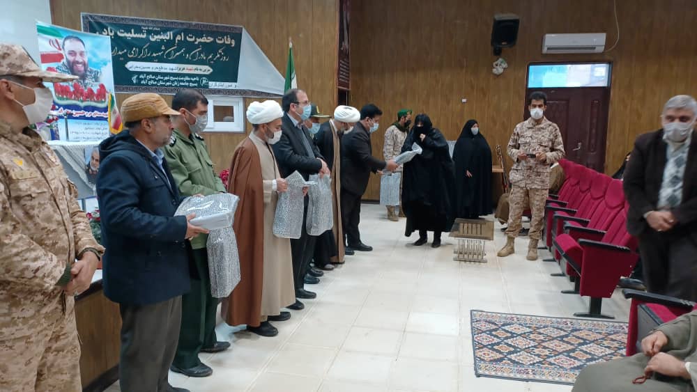 دراین برنامه که به همت بسیج جامعه زنان شهرستان صالح آبادوباهمکاری ناحیه مقاومت بسیج سپاه صالح آبادوبنیادشهیدوامورایثارگران شهرستان تربت جام باحضورخانواده معظم شهداوایثارگران،روحانیون،نیروی انتظامی ونیروی مقاومت بسیج،گردان ۱۶ امام حسین(ع) وجمعی ازمسئولین ادارات اجراشدازمادران وهمسران شهدایی که دربرنامه حضورداشتندتجلیل گردید.