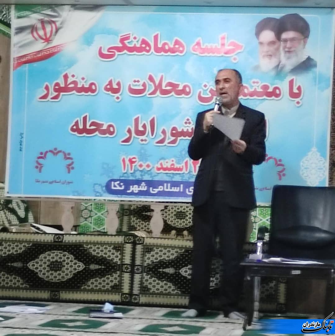 عضو شورای ششم و رئیس کمیسیون فرهنگی شهرستان نکا با اشاره به اینکه: هر عضو شورایار، نماینده ی شوراها در محلات 30گانه ی زیرمجموعه ی شهرداری نکا است ابراز امیدواری کرد: بعدها با جلساتی که با شورایارها در شهرداری برگزار خواهیم کرد، به نحو احسن و یکپارچه، عدالت اجتماعی را در محلات شهرستان نکا اجرا نمائیم.