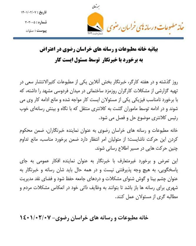 خانه مطبوعات و رسانه های خراسان رضوی- 1401.02.07