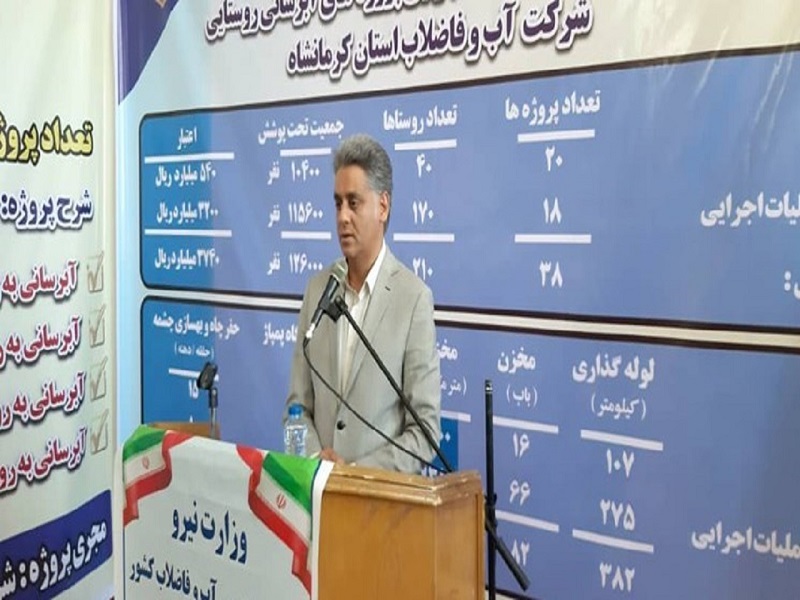 داوودی ادامه داد: مجتمع جگیران سرپل ذهاب شامل ۲۶ روستا، بیش ۸۰ درصد پیشرفت فیزیکی و در صورت رفع معارض تا مهرماه افتتاح و تمامی روستاها از نعمت آب شرب سالم برخوردار خواهند شد.