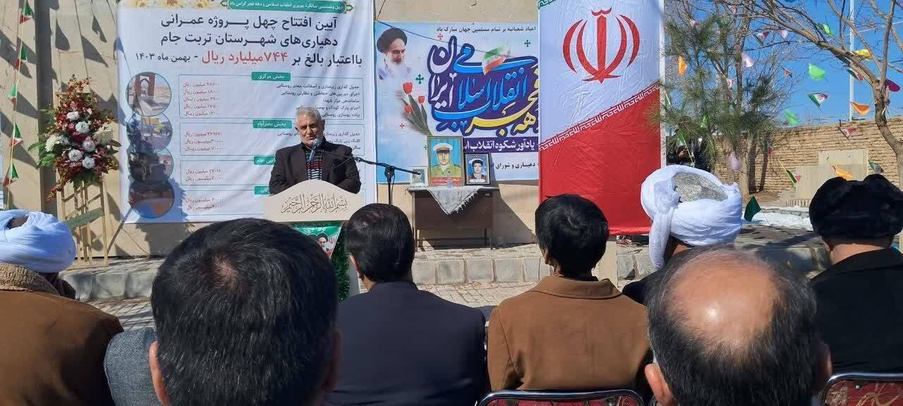 به گزارش خبرنکار تابناک استان خراسان رضوی، حسین جمشیدی افزود: پروژه‌های عمرانی و خدماتی دهیاری های شهرستان شامل جدول گذاری زیرسازی معابر روستایی، اجرای دوربین های حفاظتی و نظارتی روستایی، ساماندهی گلزارشهدا، اجرای پارک کودک و بوستان روستایی، پیاده روسازی روستایی، کلنگ زنی پارک روستایی، سالن ورزشی چندمنطوره، سالن ورزشی و چمن مصنوعی دربخش های مرکزی، نصرآباد، پایین جام و بوژگان می باشد که به صورت نمادین درروستای محمود آباد سفلی افتتاح شد .