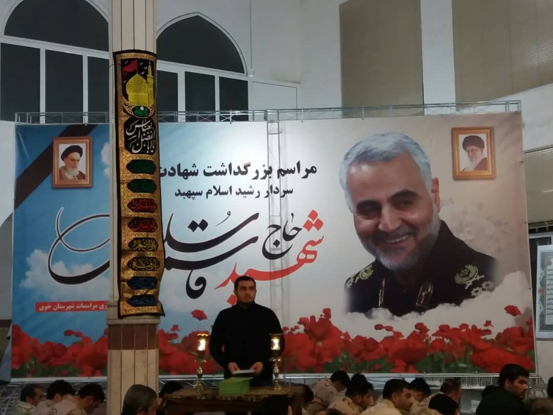 مراسم شام غریبان شهادت سردار بزرگ مقاومت ، سردارسپهبد شهید حاج قاسم سلیمانی فرمانده پرافتخار سپاه قدس که بدست جنایتکاران آمریکایی در بغداد به شهادت رسیده با حضور اقشار مختلف مردم ، خانواده های شهدا و ایثارگران ، نیروهای نظامی و انتظامی وجمعی مسئولین شهر در حسینیه شیخ نوایی خوی برگزار شد .